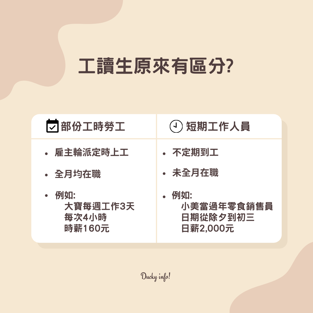 每個公司或多或少都有請過工讀生的經驗,這些工讀生或許是每週固定時間上班,也有可能是輪班性質,更或是臨時被雇主找來補充人力不足,無論是什麼樣的工讀生,依照勞基法的規定,雇主都需要在到職的第一天就給予加保,以保障勞工就業的權利。而就工讀生而言,有區分為兩種身份- 部份工時勞工與短期工作人員,以下我們就來介紹兩者的差異。